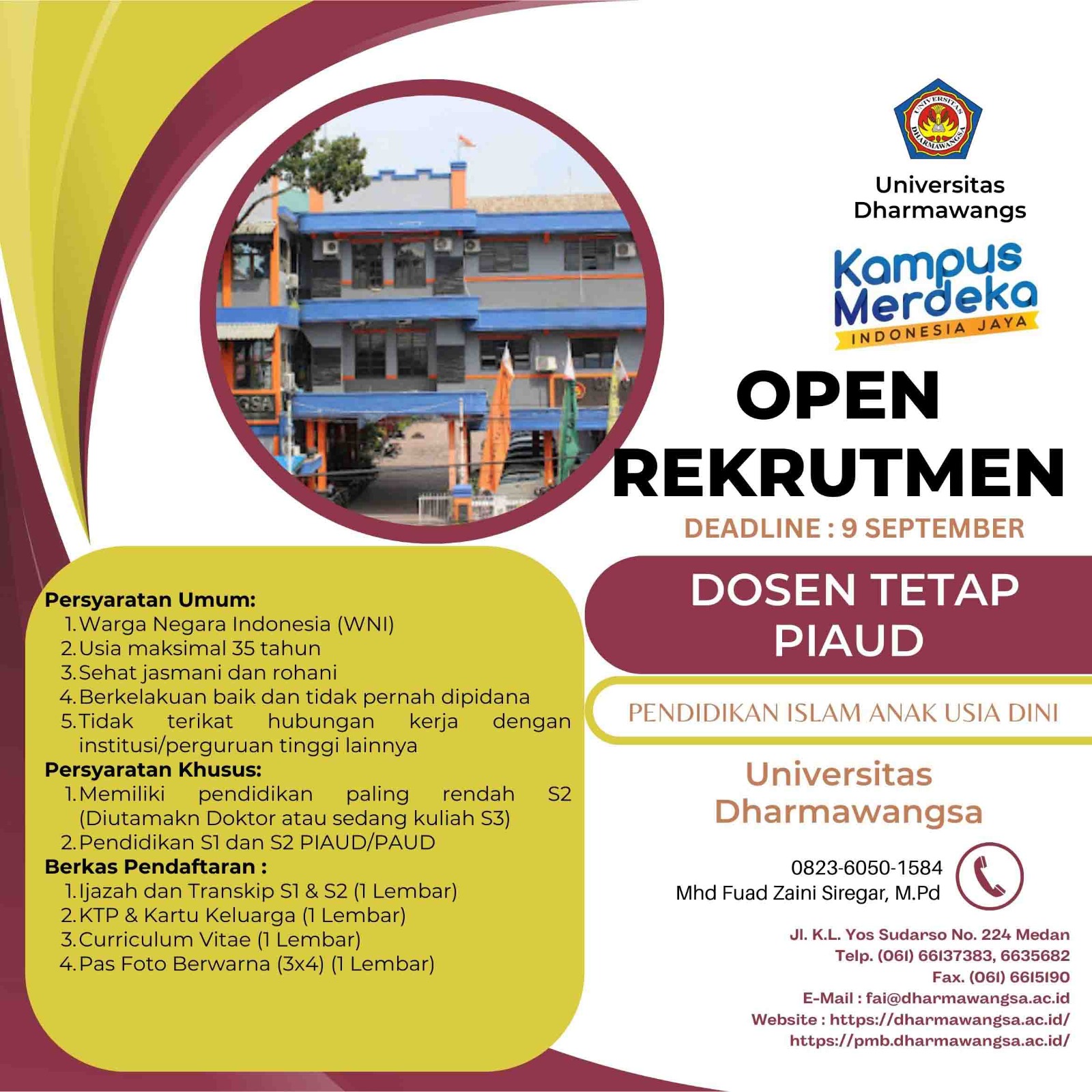 Medan, 12 November 2025 — Fakultas Agama Islam (FAI) Universitas Dharmawangsa melaksanakan Seminar Proposal (Sempro) Skripsi Program Studi S1 Pendidikan Agama Islam (PAI) pada Rabu, 12 November 2025. Kegiatan ini menjadi tahapan penting yang wajib diikuti mahasiswa sebelum melaksanakan penelitian skripsi. Dekan Fakultas Agama Islam, Rijal Sabri, M.Ag, menyampaikan bahwa Sempro bertujuan memastikan kesiapan mahasiswa […]
